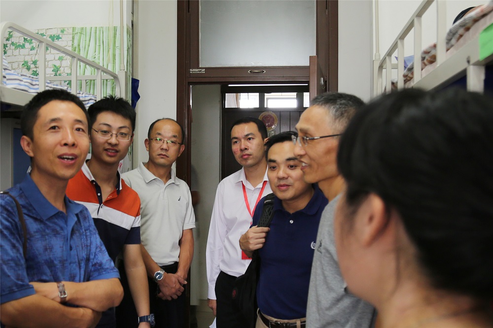 下午2点,taptap体育经理白彦锋老师,党委书记樊勇老师,党委副书记宋立岩老师和员工处办公室主任兼2016级新生辅导员于来老师走访了2号员工宿舍楼,看望正式成为中财学子的新生。看到领导老师们的到来,新生和家长们立即停下手头的工作,与老师们积极交流。领导老师亲切地询问同学们的住宿情况,并耐心解答家长们的问题和疑虑。临走时还不忘提醒员工们北京秋季干燥,希望同学们尽快适应生活环境。