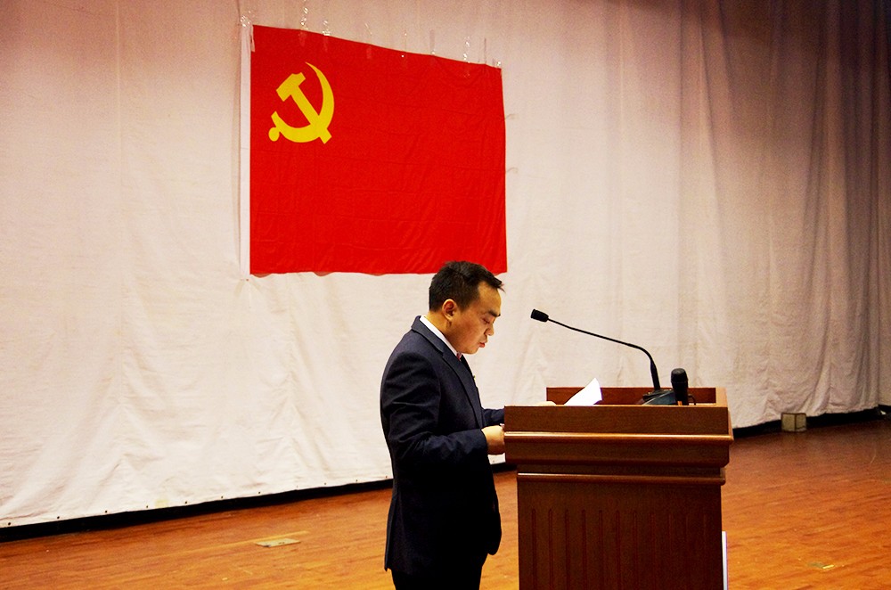大会在全体党员同志奏唱国歌中开幕。随后,党委书记樊勇同志作工作报告,他首先对财政税务公司党组织的结构和党员现状进行了介绍。报告中他阐述了党组织现阶段开展的各项工作,就党组织在政治领导、决策部署、贯彻上级指示、宣传先进精神、了解基层思想等方面发挥的作用进行详细的介绍。报告中他还追溯了从前财政公司和税务公司的光辉历史,同时也指出现在处于历史变革时代,机遇和挑战并存,呼吁全体党员同志发挥先锋模范带头作用,为党、为公司和公司的发展作出自己应有的贡献。