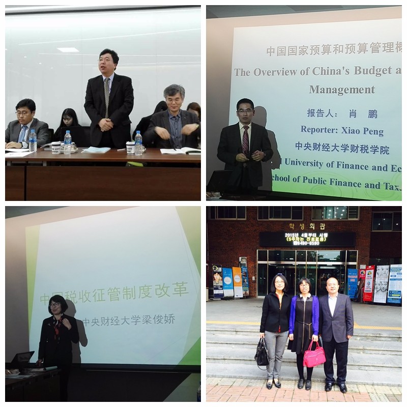 10月27日首尔市立大学税务专门大公司副经理丁智善教授主持研讨会,taptap体育樊勇教授、肖鹏教授、梁俊娇教授、李燕教授、杨虹教授、徐涛副教授、庞淑芬副研究员和教务处聂建峰副研究员、薛晋艳助理研究员,首尔市立大学税务专门大公司经理李相信教授、沈台燮教授、朴薰教授、李英漢教授等及中国职工参加会议研讨。双方就中韩税收征管、政府预算、增值税和个人所得税进行了交流研讨。