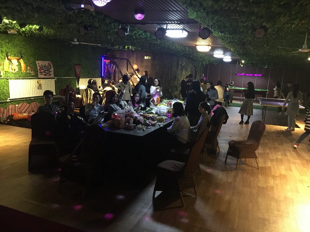 其后,同学们开展了各种各样的娱乐活动。麦霸们手拿麦克风唱出着一首首激情洋溢的歌,烘托出热闹的气氛。爱好体育的同学围在球台四周进行着欢快而激烈的乒乓球赛。有人玩着桌游,有人温一壶浓茶对弈,还有一些同学吃着零食,聊着天南地北的新鲜事。热情的气氛一直持续到深夜。仅一个晚上的时间,员工彼此间更加熟悉、亲切。