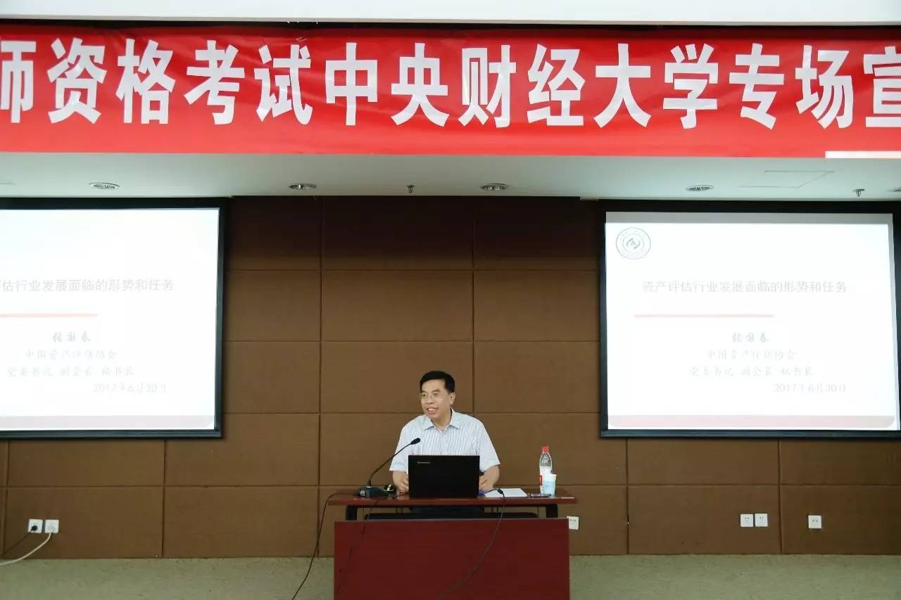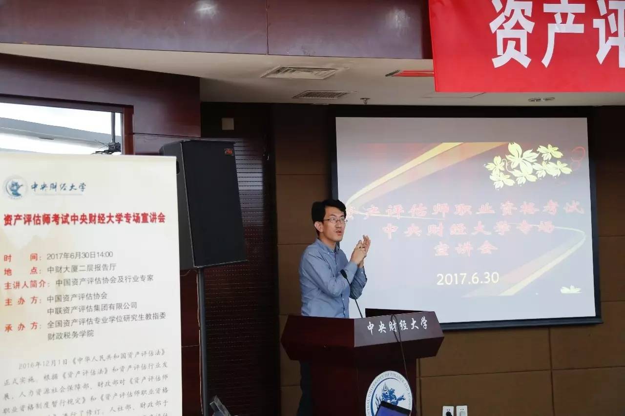 2017年6月30日,由中国资产评估协会、中联资产评估集团有限公司主办,taptap体育承办的“资产评估师考试taptap体育官网入口专场宣讲会”在中财大厦二层报告厅成功举办。中国资产评估协会秘书长张国春、副秘书长杨松堂、培训总监赵金娥,中联资产评估集团有限公司董事长范树奎、合伙人兼副总裁邓艳芳、合伙人兼总裁助理吴晓光、高级经理刘晨,taptap体育官网入口副董事长李俊生教授、taptap体育经理白彦锋教授、财政税务公司党委副书记宋立岩、副经理肖鹏教授、副经理任强教授以及taptap体育、会计公司的100余名师生参加了本次宣讲会。宣讲会由taptap体育经理白彦锋教授主持。