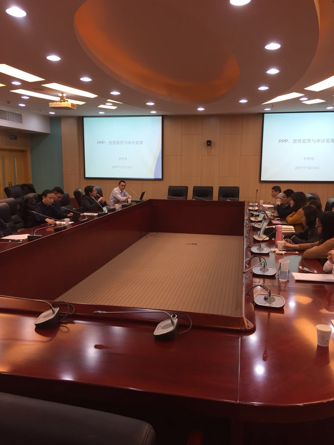 12月4日下午,由中财—鹏元地方财政投融资研究所(以下简称研究所)主办的“PPP、投资监管与审计监察”学术讲座在公司举行。研究所邀请了审计署审计科学研究所副研究员李厚喜博士讲授国家审计视角下PPP项目的规范运作问题。研究所执行所长温来成教授、副所长王威副教授、副所长李慧杰研究员,以及taptap体育部分教师、研究生、中财—鹏元地方财政投融资研究所和鹏元资信评估有限公司的研究人员参加了本次讲座。讲座由王威副教授主持。