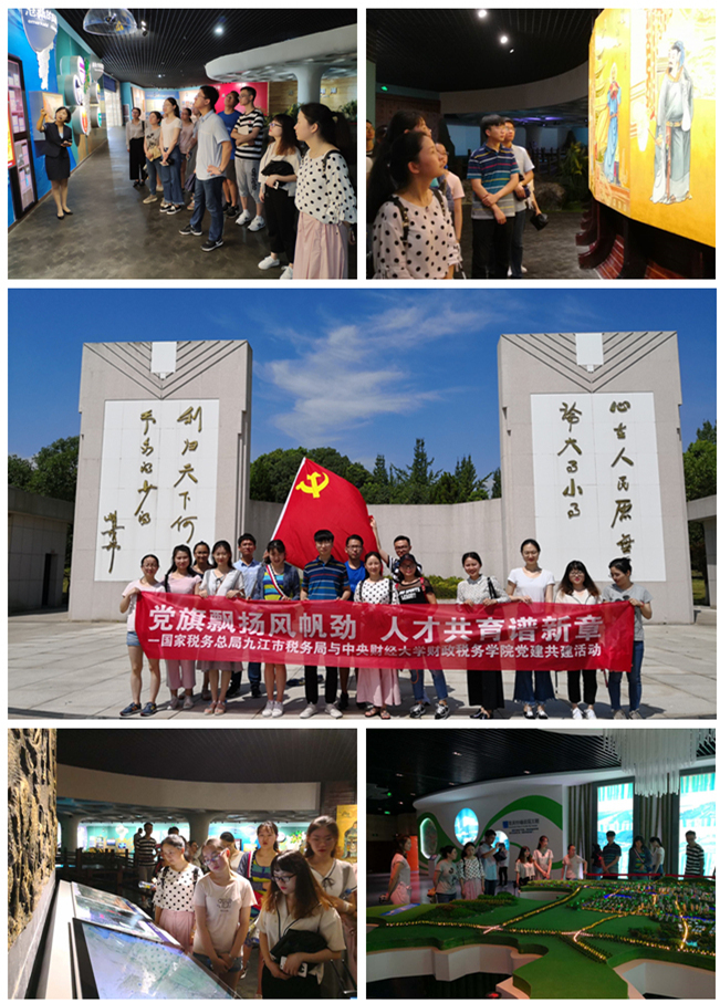 实习期间九江市税务局的同志们特地与taptap体育的师生们共同开展了党建活动。7月17日,在九江市税务局同志们的带领下,同学们前往共青城市参观了耀邦陵园、鄱阳湖生态经济区规划馆和义门陈遗址。通过此次活动,同学们对老一辈无产阶级革命家胡耀邦同志的生平事迹有了深入了解,对 “心在人民,原无论大事小事;利归天下,何必争多得少得”这句体现优秀共产党员博大胸怀的名言记忆尤深。在鄱阳湖生态经济区规划馆,同学们对江西的风土人情,政策规划等有了进一步的体会。在义门陈遗址,同学们领略了传承优秀家风的重要性并深切感受到“义门陈”所蕴含的优秀传统文化。