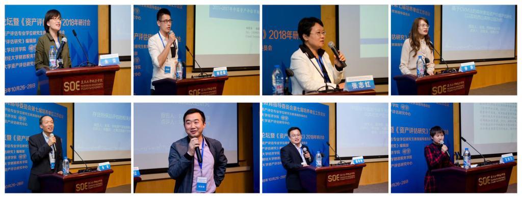 在论文研讨环节中,来自东北财经大学的朱荣副教授、福建江夏公司的林进添老师、山东财经大学的张志红教授、西南林业大学的徐琪、中和资产评估有限公司的朱军副总裁、云南大学的刘志坚老师、复旦大学的蒋祥林副教授、首都经济贸易大学的王田力老师先后作论文汇报;来自东北林业大学的张德刚教授、广东财经大学的郑慧娟副研究员、大连海事大学的何任老师、湖南大学的唐润成、上海立信会计金融公司的徐爱农副教授、四川大学经济公司金融工程系系主任马德功教授、内蒙古财经大学的乔永峰副教授、上海立信会计金融公司的陈颖老师分别就论文进行了点评。与会专家、学者对执业风险、市场集中度、质量奖与企业价值、森林景观资产价值评估、存货担保品评估、商业银行企业价值评估EVA法、股市极端市场下流动性协动效应以及资产评估机构选择的同行效应等主题进行了充分的探讨。