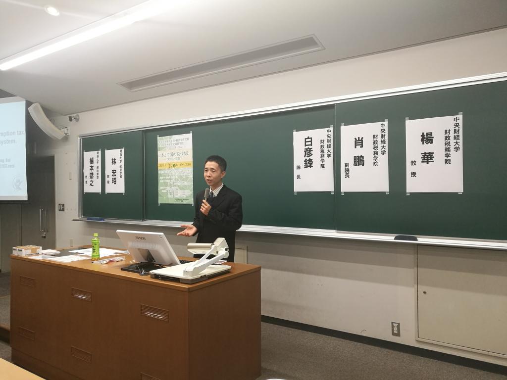 在学术交流环节,白彦锋经理做《中国成品油消费税改革问题研究》的主题发言,杨志清教授做《中国个人所得税改革最新动态》、高萍教授做《中国环境税收政策实践与评价》、姜爱华教授做《现代国家治理视角下的中国政府采购制度改革》、肖鹏教授做《中国国家预算与预算管理改革》、杨华教授做《中国政府非税收入规范化管理》的主题发言,就中国个人所得税、环保税、燃油税、国家预算、政府采购、非税收入管理等主题与日方学者进行了深入的交流。来自关西大学经济学部、横浜国立大学的师生60余人参加了本次研讨会。