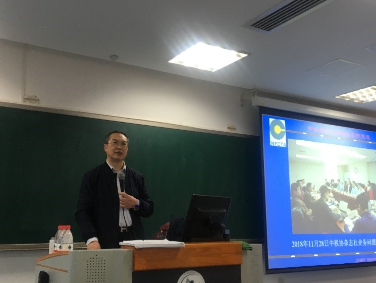 2018年12月25日下午3点30分,在taptap体育官网入口沙河校区西区主教402教室,taptap体育2018级税务专硕第41期税收综合案例研讨课如期开讲。本期主讲嘉宾为校外导师王进先生,讲座由王怡璞老师主持。
