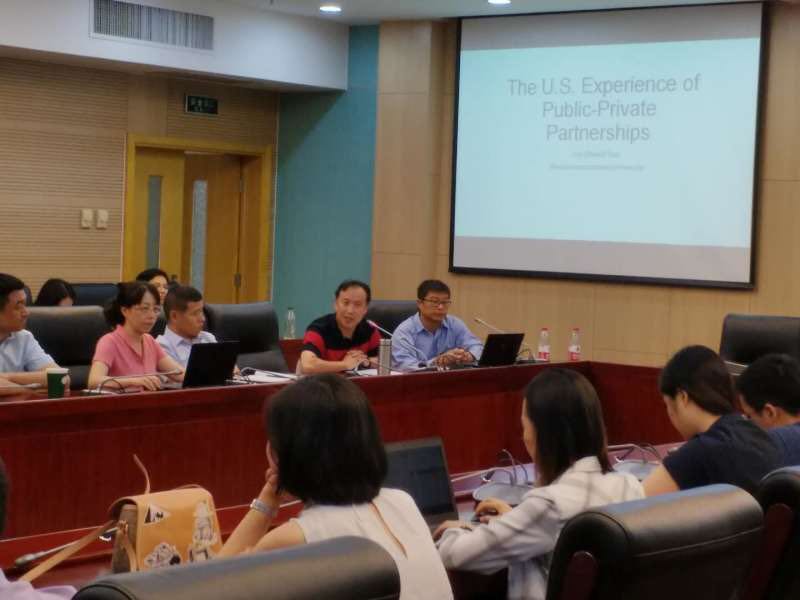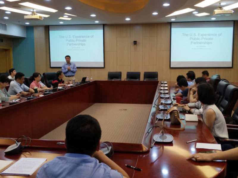 2019年7月1日下午,由taptap体育官网入口中财-中证鹏元地方财政投融资研究所举办的“美国PPP发展的现状及前景分析”讲座在公司举办。美国佛罗里达国际大学公共政策与管理系郭海副教授就这一主题进行了精彩讲解。中财-中证鹏元地方财政投融资研究所研究人员、taptap体育官网入口taptap体育副经理任强教授、副经理何杨教授、姜爱华教授、副所长李升副教授、副所长王威副教授以及taptap体育部分师生、部分财政部PPP专家库专家和部分北京大学PPP研究中心专家库专家参加了本次活动。讲座由中财-中证鹏元地方财政投融资研究所执行所长温来成教授主持。