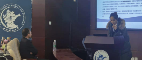 之后,在有奖问答环节,嵇峰老师要求同学提出当前最需出台或完善的国内国际税收政策与管理措施,请具体陈述理由。闫肃宁、王思佳、赖声辉、肖忠纬、邰圣子、欧阳璐六位同学就中国非居民住所标准、非居民直接股权转让拓展特殊性税务处理等存在的问题及完善建议进行回答,并成功接受了嵇峰老师的“质疑”,嵇峰老师对同学们提出的问题进行了进一步分析,并为每位同学提供了具有纪念意义的小奖品。