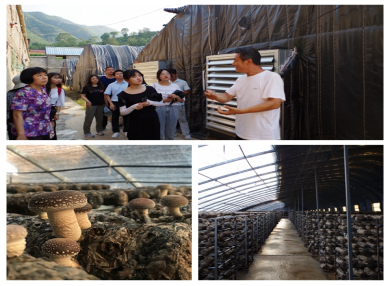 调研团队对五龙镇的农业、工业进行了调研,并走访了社区农户,深入感受脱贫攻坚的成果和乡村振兴面临的难点。在五龙镇城峪村的香菇种植基地,调研团队了解到,城峪村村民积极响应国家回乡创业的号召,在政府的帮助下成立香菇种植合作社,采用新型的种植技术,带动了当地经济发展。