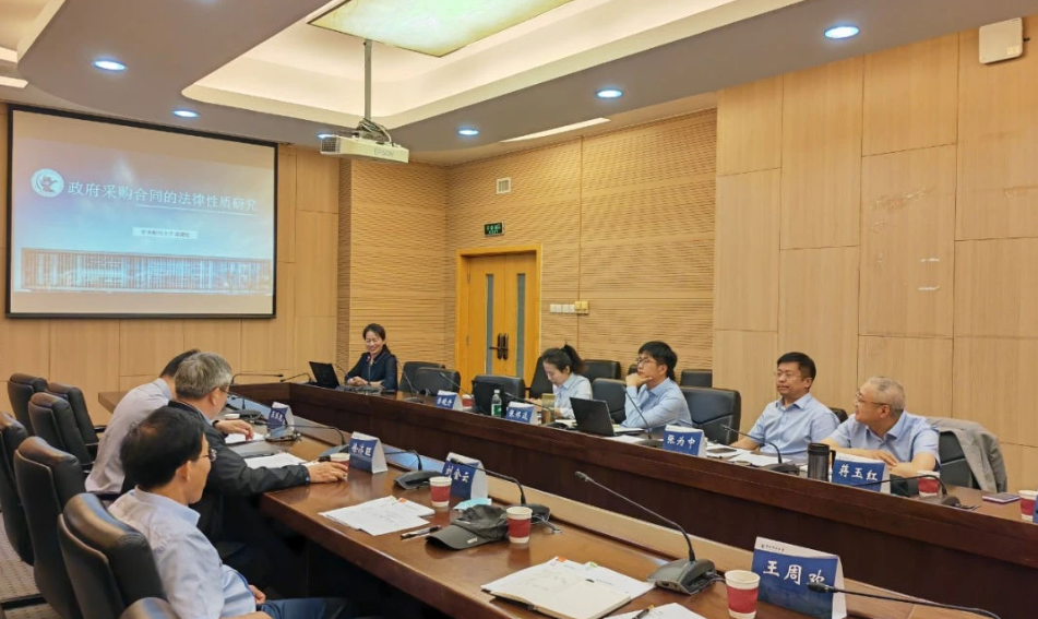6月7日上午,由财政部全国预算与会计研究会(以下简称“预研会”)主办,公司中国财政发展协同创新中心、全国政府预算与会计研究智库协办的 “政府采购合同的法律性质研究”课题评审会在公司学术会堂603会议室举行。课题评审会由预研会秘书长徐济旺主持,由预研会刘金云副会长以及来自财政部国库司、中国人民大学、上海市财政局的专家、学者组成评审小组,公司姜爱华教授作为课题负责人带领课题组成员参加会议并汇报研究成果。