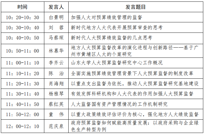 “第三届人大预算监督论坛”学术研讨会 (10:20-12:00)