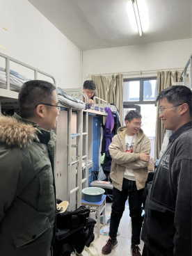 为营造良好的生活学习氛围,了解员工返校情况,提高员工安全防范意识,2024年3月6日晚5点,财政税务公司党委书记肖鹏、副书记陈士平及辅导员吕浩然老师一同深入走访员工宿舍,在学期伊始慰问返校员工,深入员工宿舍进行安全提醒与检查。