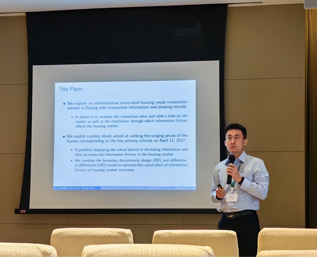 李科杨老师介绍了依托于住房公积金优惠政策为契机,基于中国某座城市的住房交易大数据,检验了补贴信贷政策如何作用于住房市场,发现公积金优惠信贷在房地产市场的上行期将促使房产交易价格上涨,相关收益几乎被销售方所获取,导致没有住房公积金的群体面临更高的购房压力,从而带来收入分配上的分化效应。该研究对于资产信贷支持领域的文献以及收入分配不平等领域的文献均有补充效果。