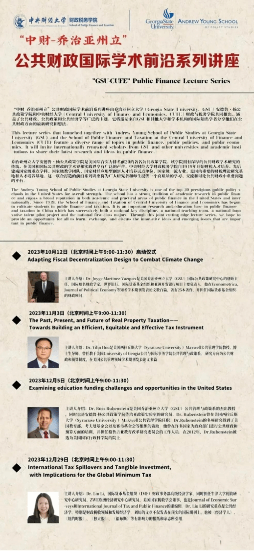 10、推出“中财-乔治亚州立”公共财政国际学术前沿系列讲座