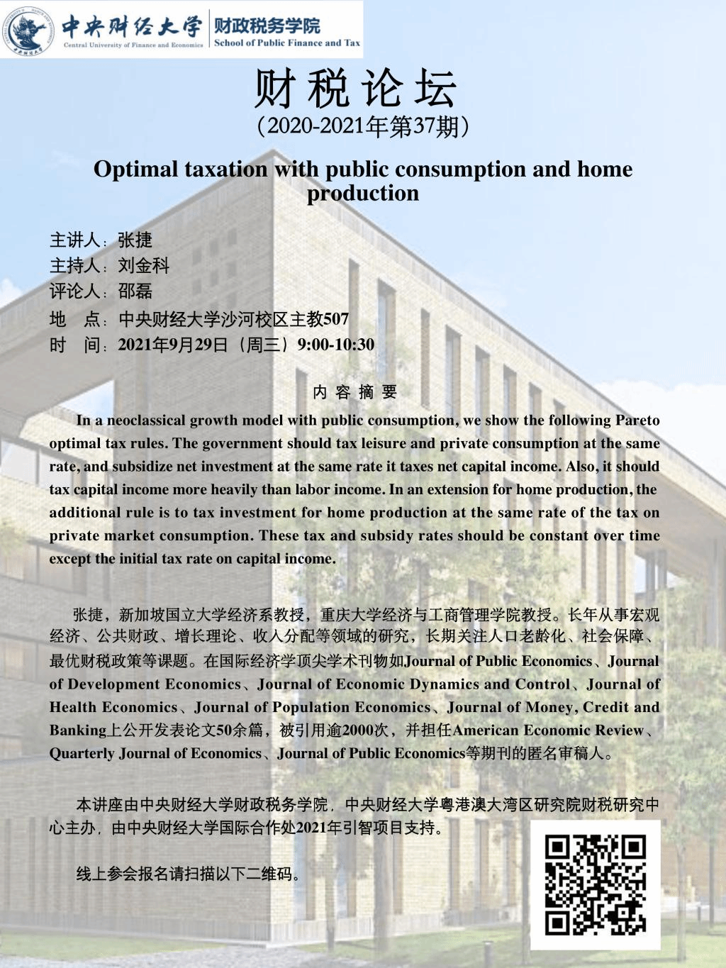海外学者财税理论与政策前沿课程|旧金山州立大学副教授王倩