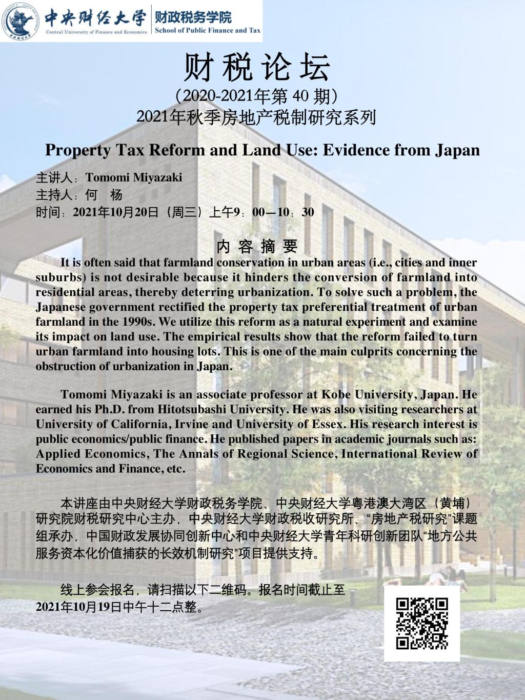 【财税论坛】Property Tax Reform and Land Use: Evidence from Japan