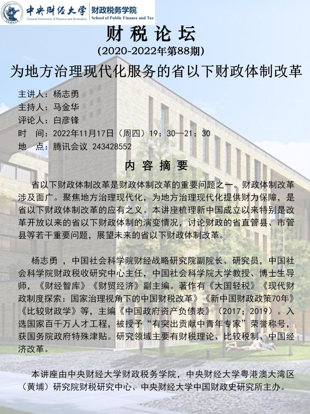 【财税论坛】为地方治理现代化服务的省以下财政体制改革