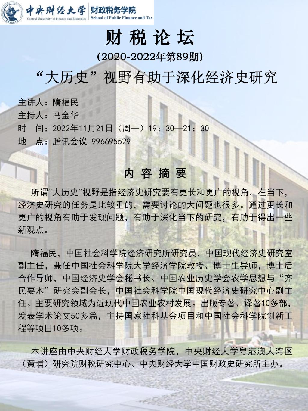 【财税论坛】“大历史”视野有助于深化经济史研究