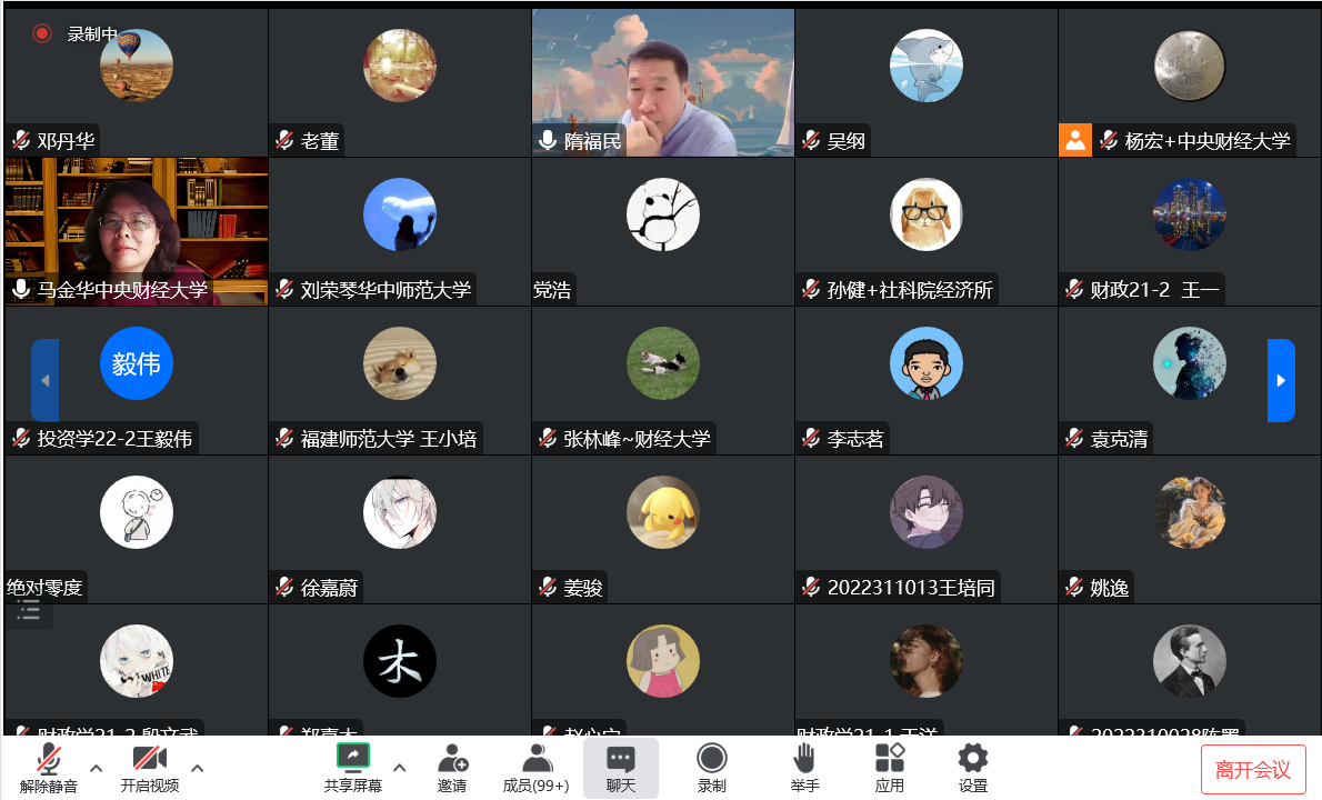 2022年11月21日(星期一),taptap体育召开财税论坛(2020-2022年第89期)。本次论坛邀请到中国社会科公司经济研究所隋福民教授作了题为“‘大历史’视野有助于深化经济史研究”的讲座,taptap体育多名师生参加了本次论坛。本次财税论坛采用腾讯会议的方式进行,会议由taptap体育马金华教授主持。