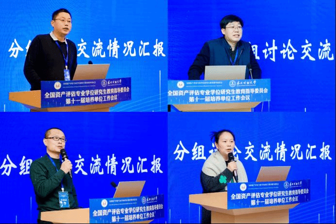 讨论组组长王佳教授、文豪教授、葛锐教授和杨青教授分别总结并汇报了讨论组的情况。与会代表就专硕招生、团队队伍建设与团队培训、教材建设、教学研讨、产教融合培养、理论研究、学科归属等资产评估专硕教育的实际问题进行了充分交流,并提出了切实可行的建议。