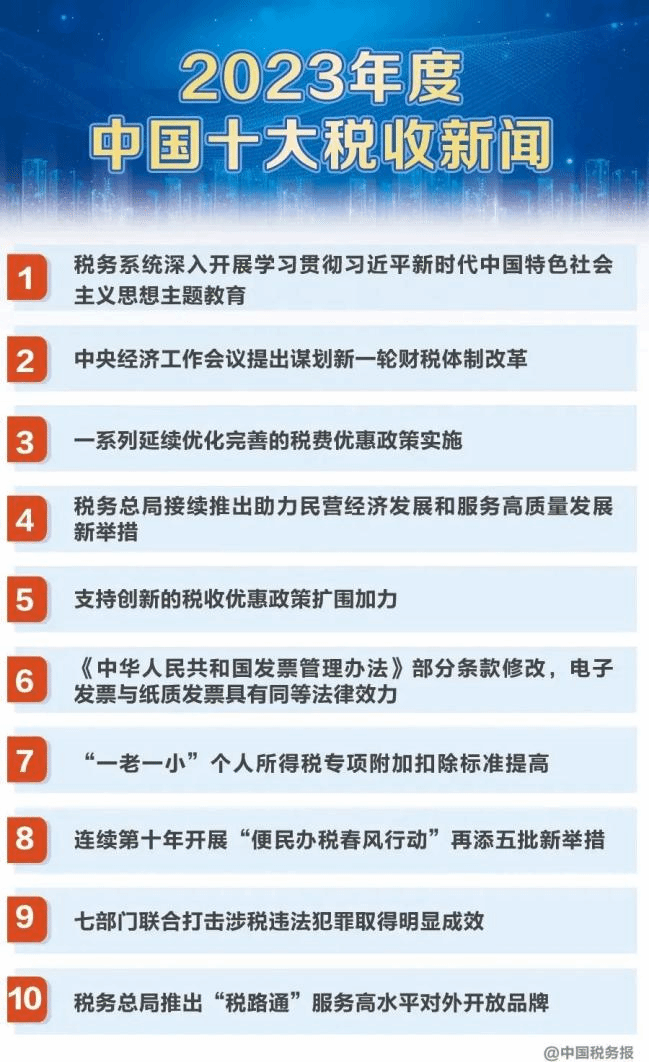 1月9日,由中国国际税收研究会、中国税务报社、中国税务杂志社联合举办的2023年度中国十大税收新闻暨世界税收十件大事发布会在北京举行。税务系统深入开展学习贯彻习近平新时代中国特色社会主义思想主题教育等新闻入选2023年中国十大税收新闻;第三届“一带一路”国际合作高峰论坛成功举办并强调加强税收等领域多边合作平台建设等入选2023年世界税收十件大事。公司经理樊勇教授应邀参加发布会并对2023年中国十大税收新闻和世界税收十件大事作了点评。