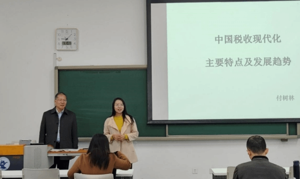 付树林老师从1995年7月至今在国家税务总局工作,先后任征收管理司副处长、国际税务司处长、税收科研所副所长、税收宣传中心主任兼办公厅副主任,现任中国税务报社社长、中国国际税收研究会副会长兼秘书长。刘金科副经理对付社长的到来表达了热烈的欢迎,表示这是公司师生非常宝贵的学习机会。