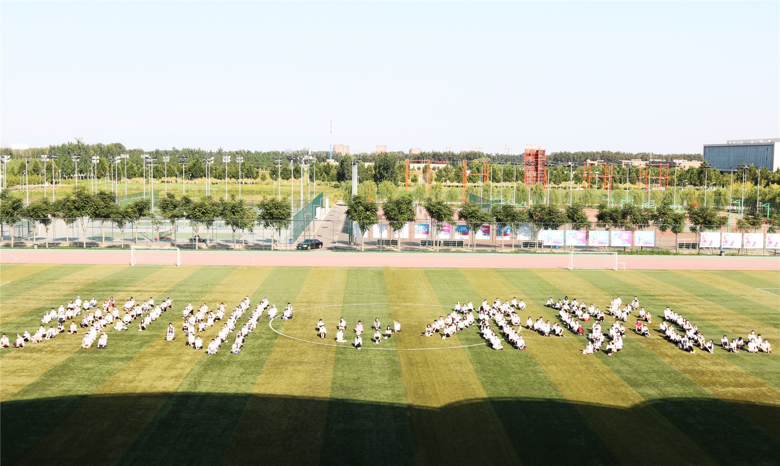 随后进行的“趣味拼字”环节,则是让新生们依据指挥,相互合作,排成有序队列,拼出“财税”二字。考虑到光影问题,这一环节被提前到下午三点进行,但即便天气炎热,同学们依然情绪高涨,听从指挥,相互配合,积极出谋划策,在短短的20分钟内排出了整齐的“财税”字阵,展示了良好的团队精神。