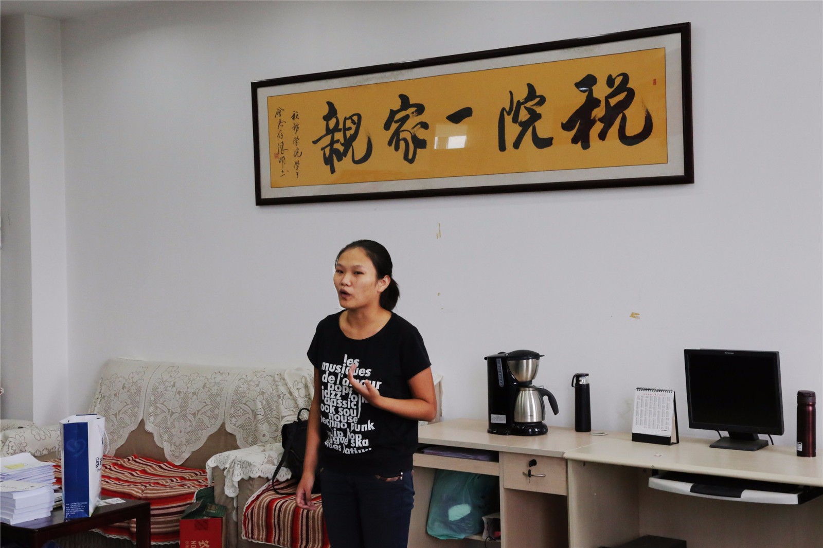 15位参赛同学依次进场演讲。她们风格各异,各有千秋,有的声情并茂,极具现场感染力,深深地吸引了在场听众。有的语言质朴,用满满的真情慢慢地打动了现场评委;有的激情昂扬,以饱满的热情展现了自己独特的风采。从初入中财的欣喜到独自面对生活琐碎的彷徨;从假期卸掉学业重担的放松到如今课内外学业活动的紧张;从对一直陪伴自己身边的父母的不舍到学会直面孤独的坚强。和过去告别,和明天握手,同学们分享着自己的心路历程,分享着对老员工活的向往,分享着未来的人生规划。同学们准备周全,现场遇到问题立刻调整,及时应变,顺利完成了演讲,得到了在场评委的热烈掌声。演讲结束后,评委们首先给予了他们充分的肯定和鼓励,并针对演讲内容、情感处理、肢体动作等方面提出了相应的建议,最后给予同学们老员工活最美好的祝愿。老师和学长学姐们恳切的意见令参与演讲的同学获益匪浅,对同学们日后的发展极有帮助。