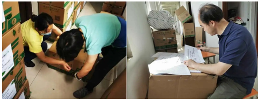 连日来,公司全体教师全部上阵,分批次开展行李打包邮寄和留置物品存放工作,公司财务处的老师们也自告奋勇,向公司伸出援助之手。第四组的老师们,有的已经年过花甲,身体欠安;有的老师六月份刚刚做过手术;有的老师家里孩子还很小……但他们都选择了向前和坚守,即使在收拾包裹中手被划伤也阻挡不了他们为员工打好每一件行李的信念。他们不仅仅是在打包行李,更是传递着母校、公司和老师们对2020届毕业生的浓浓爱意。