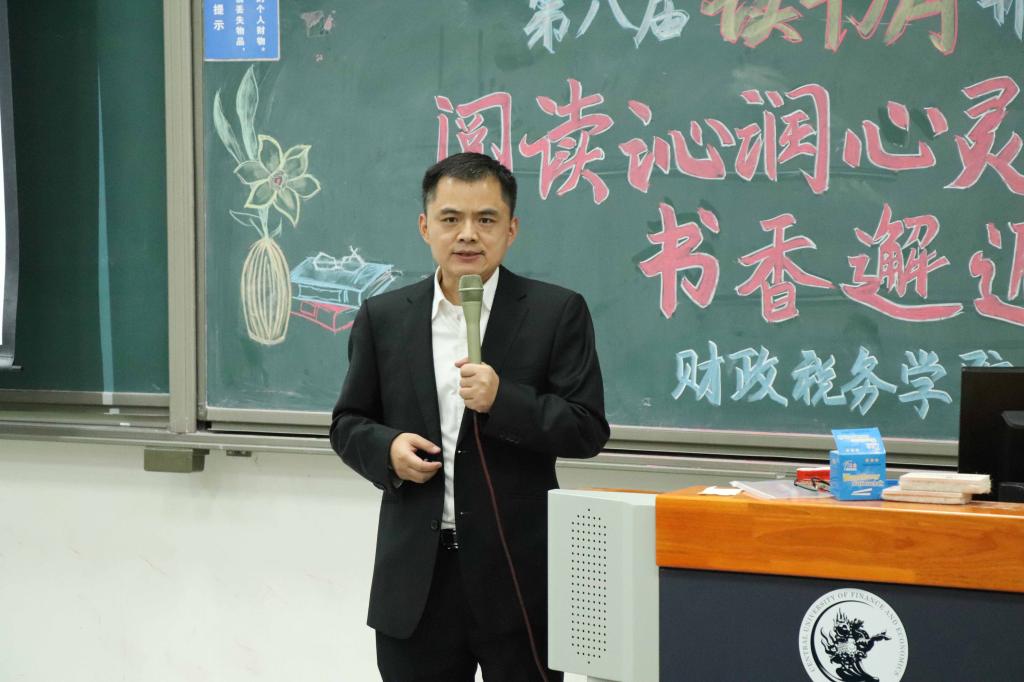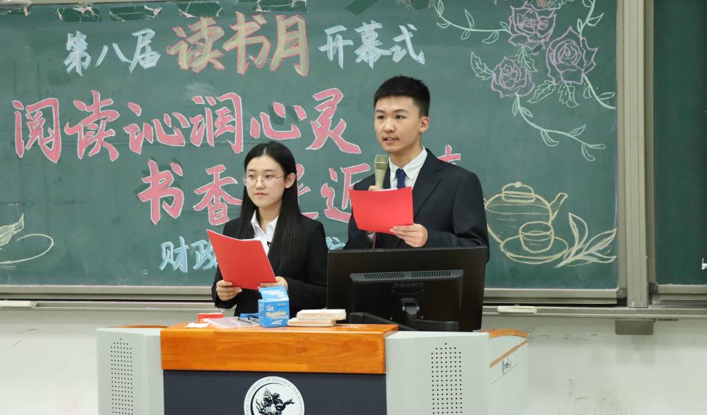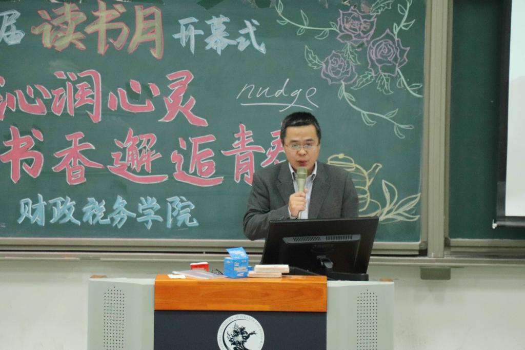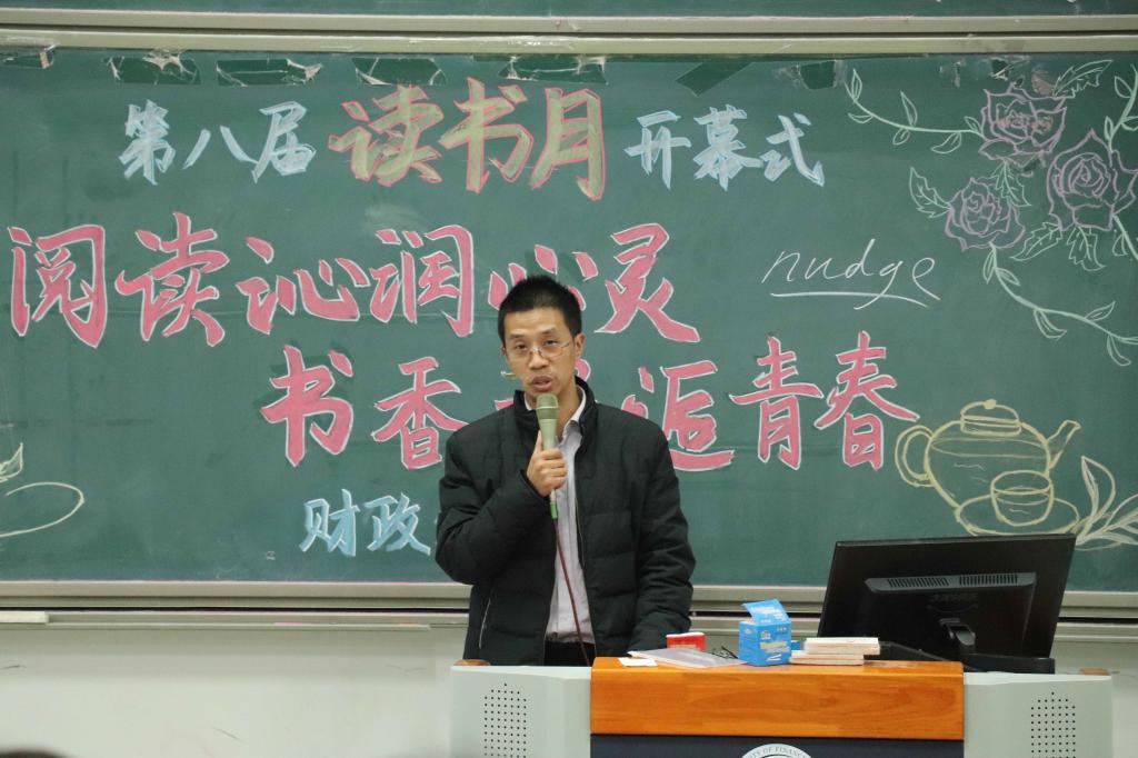 10月25日下午,在东区主教216迎来了taptap体育第八届读书月开幕式,本次开幕式由财政学类17-6班刘佳和财政16-2班李昱同学主持,员工处副部长、学工部副部长、武装部副班长陈振老师,教务处副处长张苏老师,研究生院副经理徐振东老师,taptap体育经理白彦锋老师,党委书记樊勇老师,党委副书记宋立岩老师,副经理肖鹏老师、任强老师、何杨老师,经理助理汪昊老师,组织员李飞霞老师。到场的老师还有:李贞老师,李升老师,汤贡亮老师,梅阳老师,李佳老师,党支部书记王乐天老师,团委副书记陈颖老师,辅导员徐燕妮老师出席了活动,taptap体育大一的全体同学参与了开幕式。