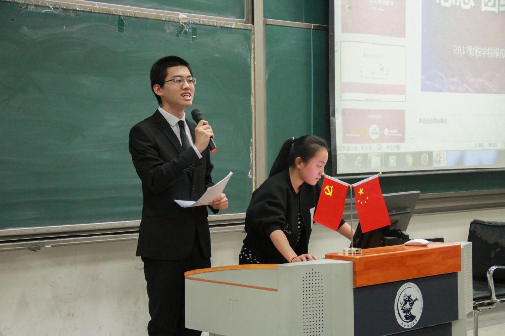 首先开始的是学习十九大团课,由何熙同学解读十九大报告内容,他用生动活泼的语言解读了十九大报告中“八个明确,十四个坚持”的具体要义,并以提问的方式和现场同学进行亲密互动,场下的同学们积极发言,认真回答。接下来由张弛同学对十九大报告内容总结并介绍本次基础团校模拟人大的活动规则。