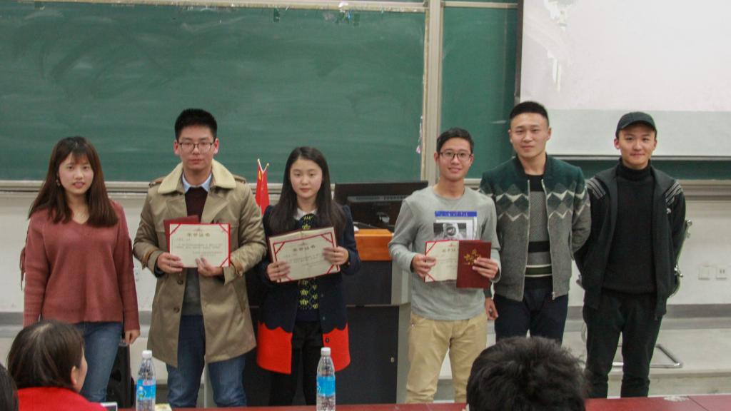 一分钟陈述结束之后,由组织部王子卓同学宣布最佳代表人选,安徽省代表严春浩、贵州省代表柳连源、江苏省代表王誉桦入选并上台领奖,合影留念。最后,主持人刘天颀宣布本次taptap体育十九大团课暨基础团校模拟人大活动圆满结束。