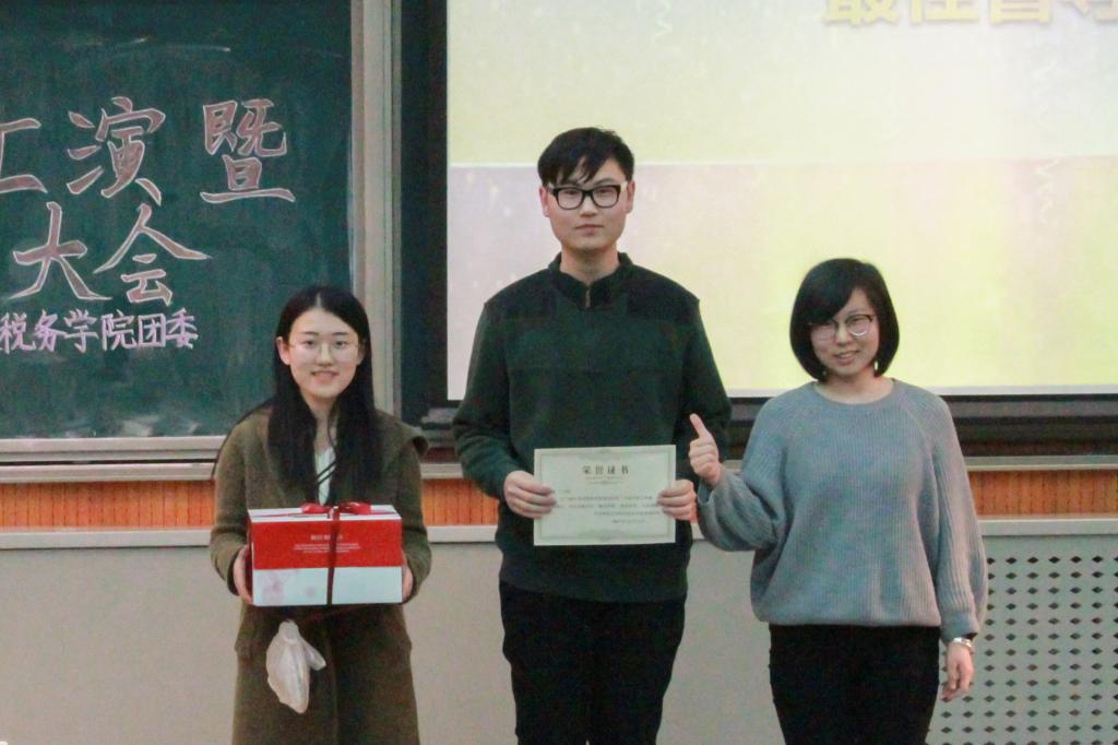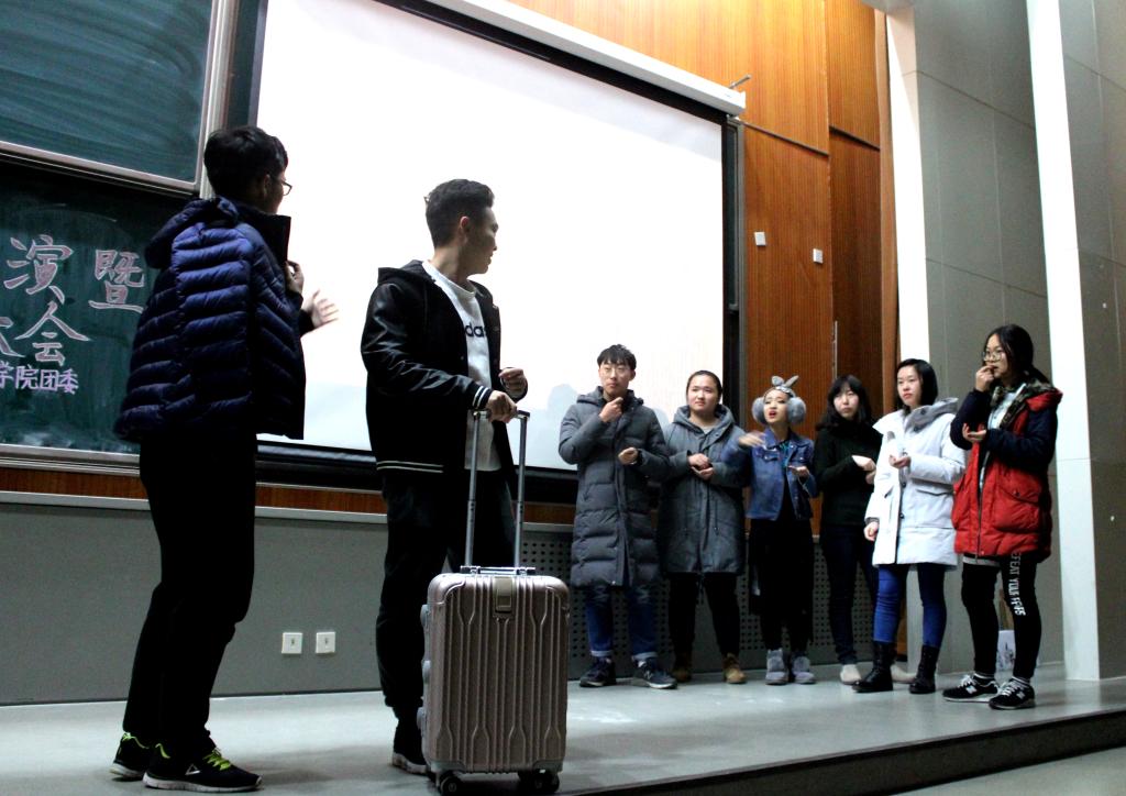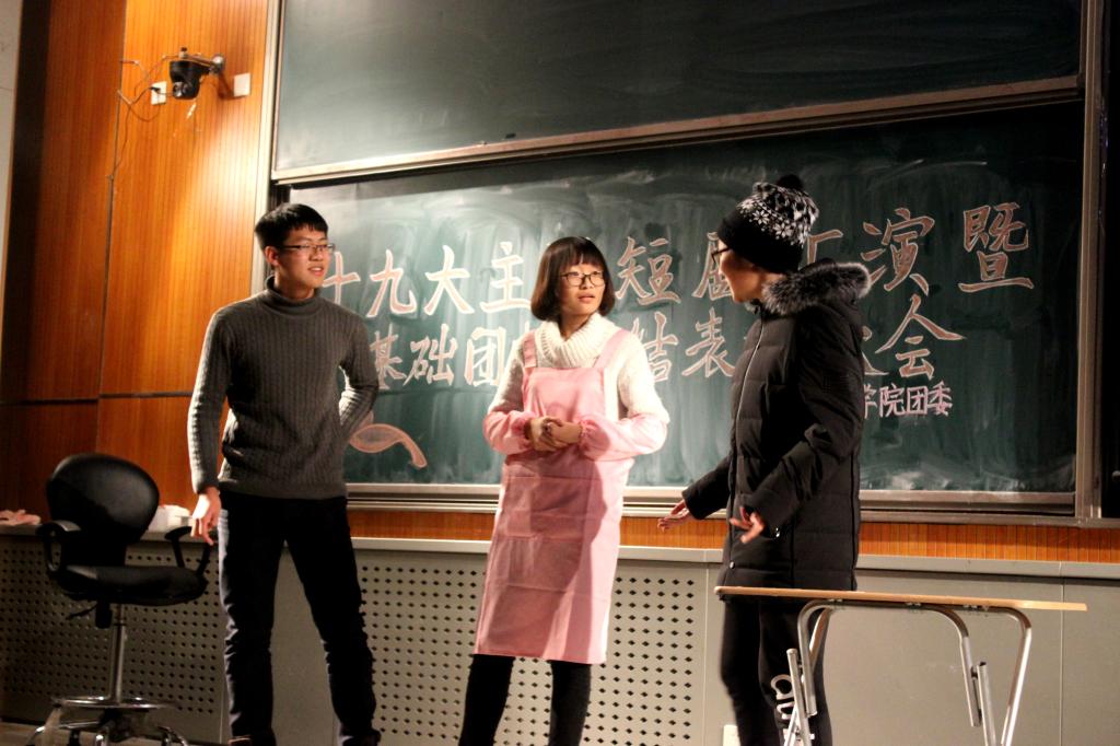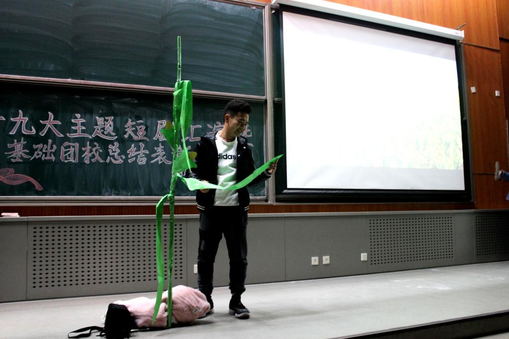 每个小组的短剧主题都与十九大和当今热点话题相契合,反映了同学们对时事政治的关注。精彩的表演之后,现场播放了获最佳作品奖的第二小组和获最佳人气奖的第十小组的微电影。接下来,组织部部长高广睿为基础团校学员颁发纪念徽章。