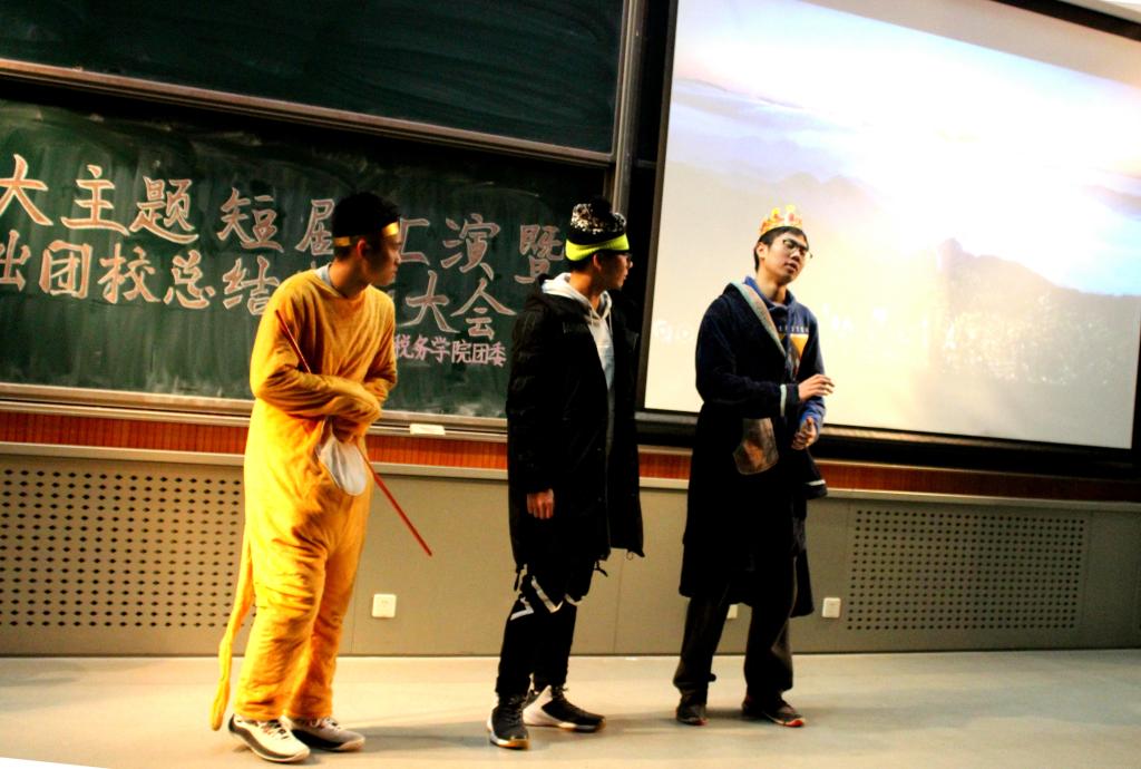 接下来是第九小组的《星球选美大赛》。该剧以太阳系的戏精星球们的选美大赛为背景,星球们各不相让,纷纷为自己拉票。然而评委嫦娥姐姐却将冠军评给了主持人太阳。这正是契合了当下全国人民在指导思想的指引下,团结在党的周围。各有千秋的美丽只有在党的坚强领导下才会实现社会和谐。第七组同学借经典的故事《西游记》演绎了精彩剧目《重走西游路》。新时代的西游路上,融入了许多新的因素,见证了一带一路的飞跃发展和中国经济的沧桑巨变。