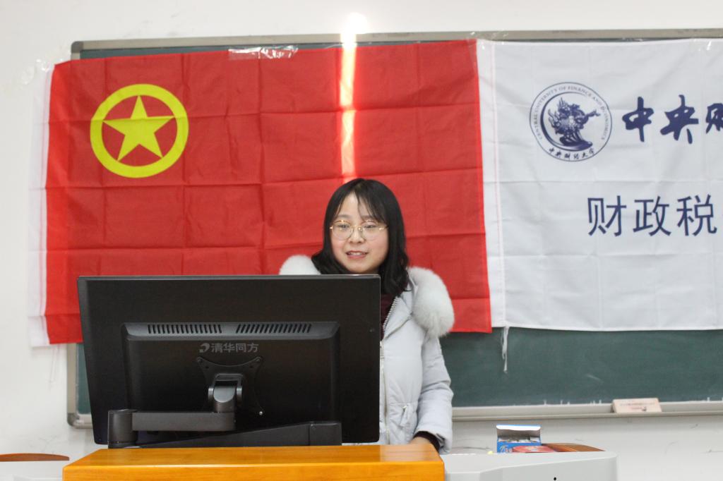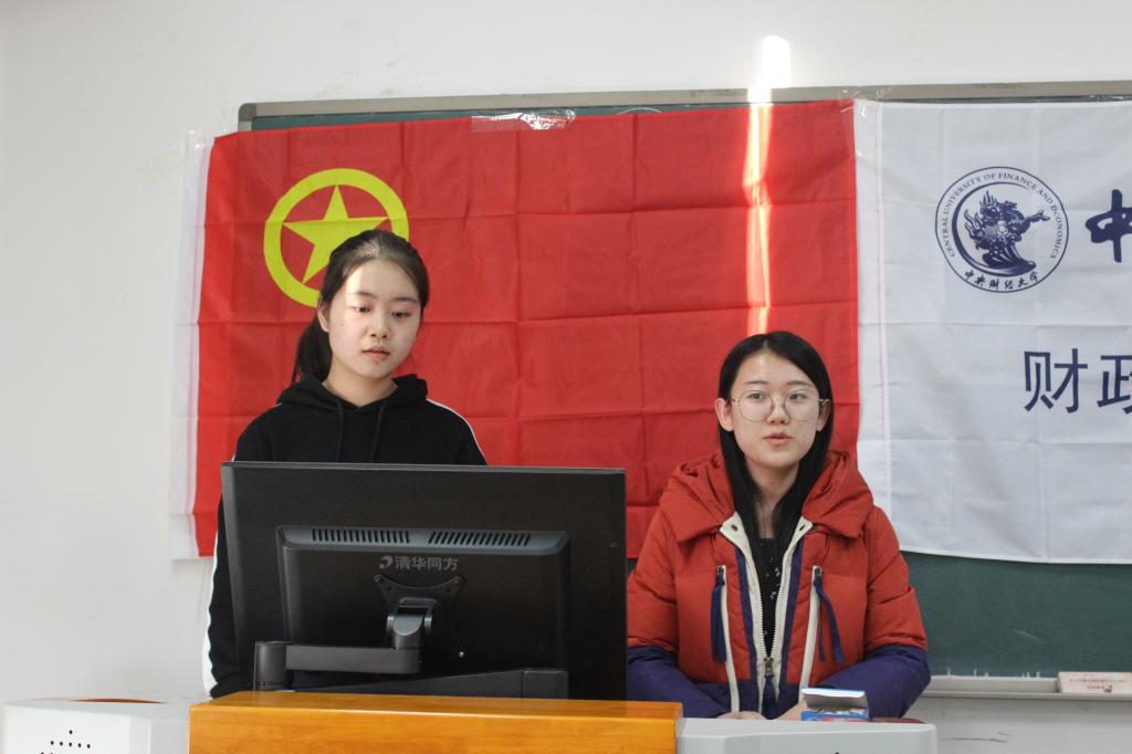 财税三班的班委用幽默诙谐的语言吸引了所有人的注意,展示了三班同学的学习成果,选取十九大报告中的段落进行填空、到达天安门广场进行十九大讨论学习活动、朗读比赛等别出心裁的活动处处体现了同学们对十九大的重视和学习十九大的专注。财税四班用严肃严谨的语言报告了包括学习十九大精神、团员评优、参观砥砺奋进五年成就展览、团日班会等活动。满溢着对党、对国家的热爱和敬仰的报告令人感叹。