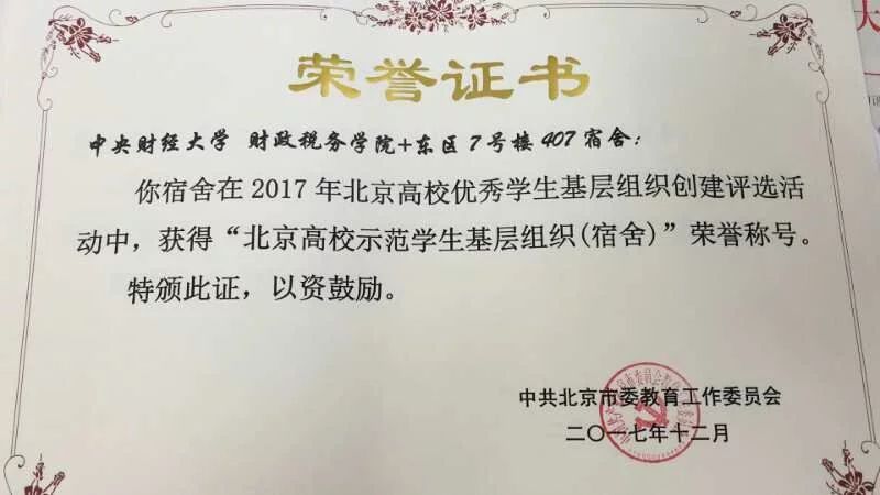 通过北京市教育工作委员会的严格考评,在2017年北京高校优秀员工基层组织创建评选活动中,taptap体育东区7号楼407宿舍,被评为“北京高校示范员工基层组织(宿舍)”。让我们向这些同学表示最诚挚的祝贺,希望他们能再接再厉,也希望公司同学以他们为榜样,为创建优秀集体不断努力。