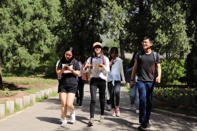 本次春游活动总共分为暖场游戏、定向越野和野餐三个环节,参加本次活动的同学被预先分为十个小组并选出了自己的组长。上午九点,同学们准时到达香山公园的致远斋,进行了本次春游的第一环节,暖场游戏。同学们以小组为单位进行了两个游戏,第一个游戏是串火车记人名,每位成员要说出前面成员的喜好和名字,第二个游戏则是组内成员随机手拉手,最后解开连环组成一个闭合的圆圈。经过两轮暖场游戏,同学们迅速熟悉了彼此,融为一片,使春游的气氛活跃了起来。