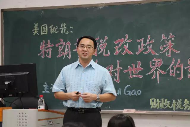 5月28日晚7点,taptap体育在沙河校区主教405教室举办“美国优先:特朗普税改政策及其对世界的影响”经济系列讲座。taptap体育经理白彦锋教授、国际税收系陈宇老师、院团委副书记陈颖老师和各年级本科生研究生参加了本次讲座。本次讲座的主讲人高明晖教授,是哈佛教育学博士和阿肯色州立大学终身教授,主要研究领域为教师教育、青少年行为失德以及中美对比,多篇文章被国际顶尖教育期刊收录。