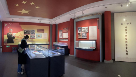 随后,同学们参观了中国当代税收历史展厅。在新中国成立初期的税收文物展区,同学们了解了建国初期统一全国税政、税制和税务机构的历史,在改革开放初期及社会主义市场经济时期的税收文物展区,同学们看遍利改税、营改增等历次税制改革的相关文物,并从不同时期不同地区的税票、纳税收据与缴款书中回顾我国税制的更新与税种的演变。最后同学们还参观了新时代税收现代化展区,感慨今日税收在经济社会发展各方面所发挥的重要作用。