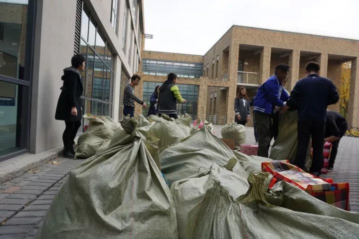 下午十四点,九名同学来到了七号楼306教室,开始对衣物进行整理。在捐衣活动中募集到的上千件衣物摆满了整间教室,同学们用来放置衣物的袋子、盒子大小不一并且数量繁多,给衣物整理和搬运带来了困难。为了方便所有衣物的邮寄,同时也为了南石桥村的儿童和老人能够成功收到这些可以带去温暖的衣物,同学们经过简单讨论后进行了分工合作。五名女同学用事先准备好的麻袋进行衣物的分装,另外四名男同学再把麻袋搬到七号楼下,之后,同学们用尼龙绳将二十个装满衣物的麻袋进行封装。九名同学经过了将近一个小时的努力,终于完成了所有衣物的搬运和整理。在整个过程中,同学们始终保持着极高的热情和动力,当一个个沉甸甸的麻袋都装上搬运车时,同学们的脸上都洋溢着喜悦的笑容。