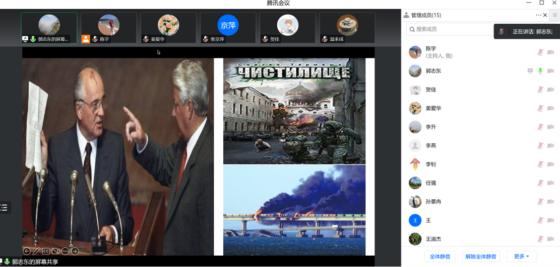 党的二十大召开在即,根据公司文件精神以及公司党委工作安排,国际税收系党支部与财政管理系党支部于2022年10月10日晚7:00通过腾讯会议联合举办了迎接党的二十大主题宣传教育活动。会议的议题有三项,一是国际税收支部郭志东老师报告党史学习专题《历史自信与中国特色社会主义道路》 ;二是支部党员就“强国有我新征程,喜迎党的二十大”展开讨论;三是财政管理支部书记姜爱华老师做会议总结。