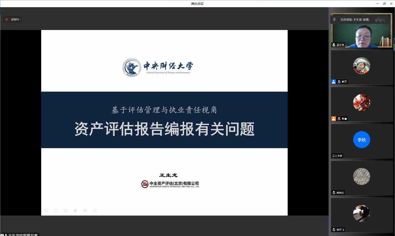 2022年4月-6月期间,公司“资产评估大讲堂”系列讲座于每周三下午通过腾讯会议线上举办。副经理李小荣教授邀请了来自资产评估实务领域的各位专家,就评估案例与实务同2021级资产评估专业硕士的同学们进行了深入交流。