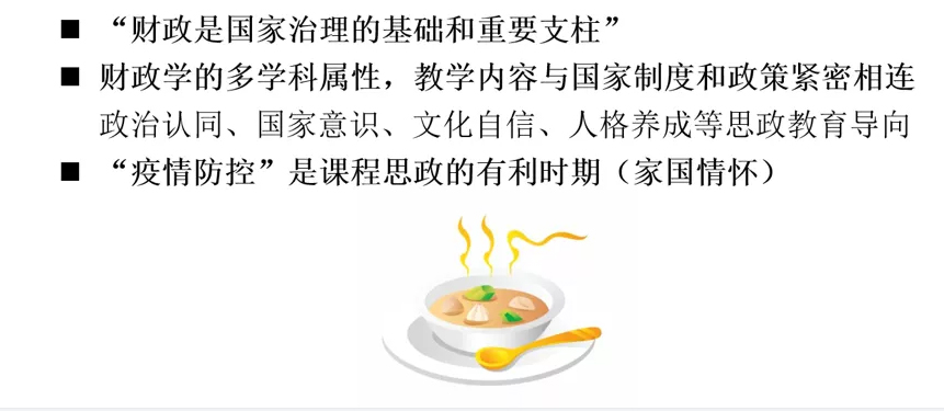 这学期,我结合公司推的“时雨课堂”,专门为员工讲了一个“疫情防控、财政支出和大国担当”的微课,也就是,在讲完支出之后帮同学们梳理一下,在疫情防控之下,我们前面所学过的财政支出的理论,和我们财政支出的实践,和我们财政支出中呈现的这个大国担当的这样的思想,是如何关联在一起的,从而将理论、实践和课程思政紧密结合在一起,就像李贞老师刚才说的那样。